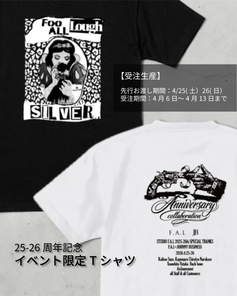 4月に開催されるF.A.Lの周年記念として、イベント限定Tシャツとしました。